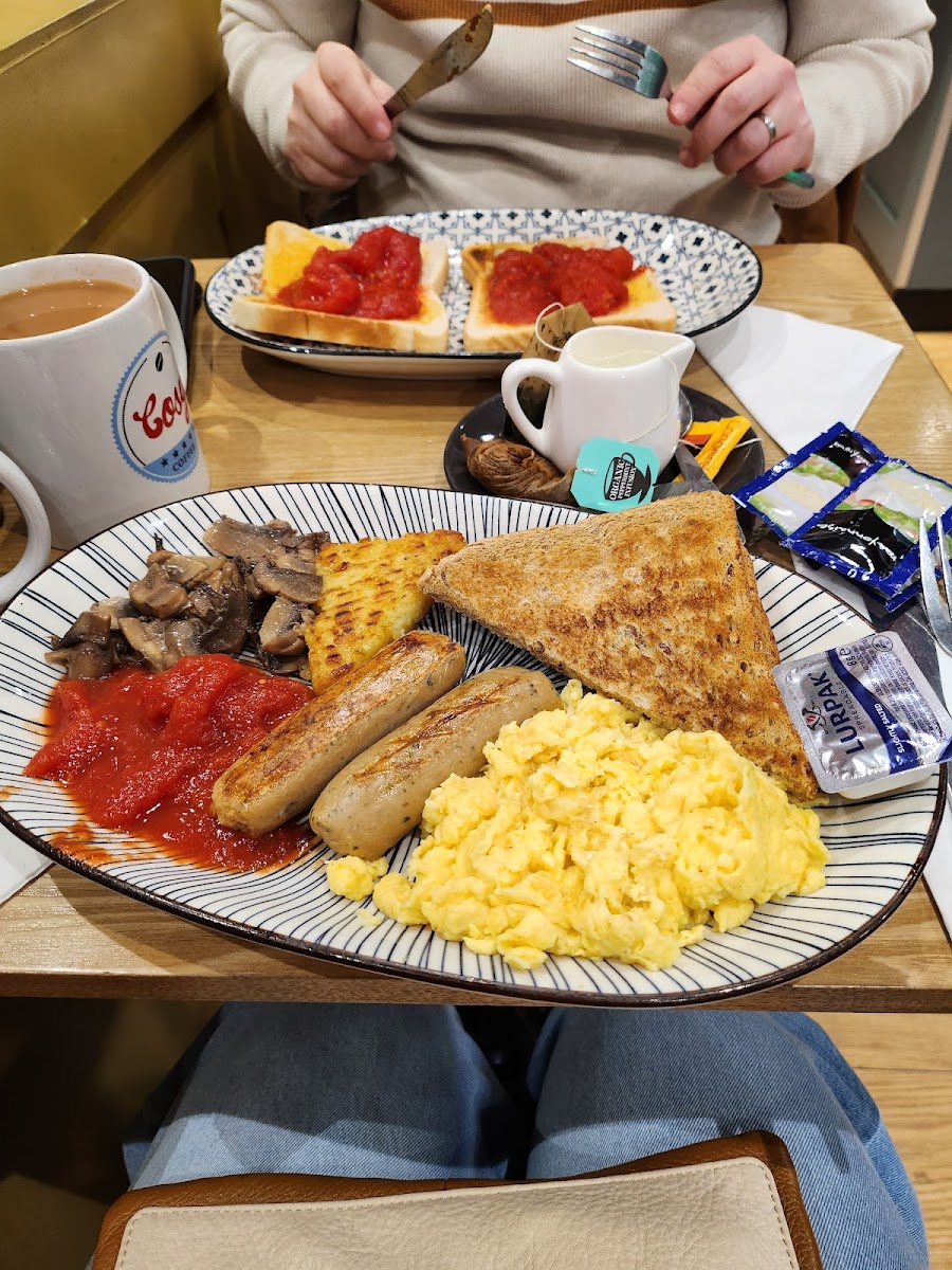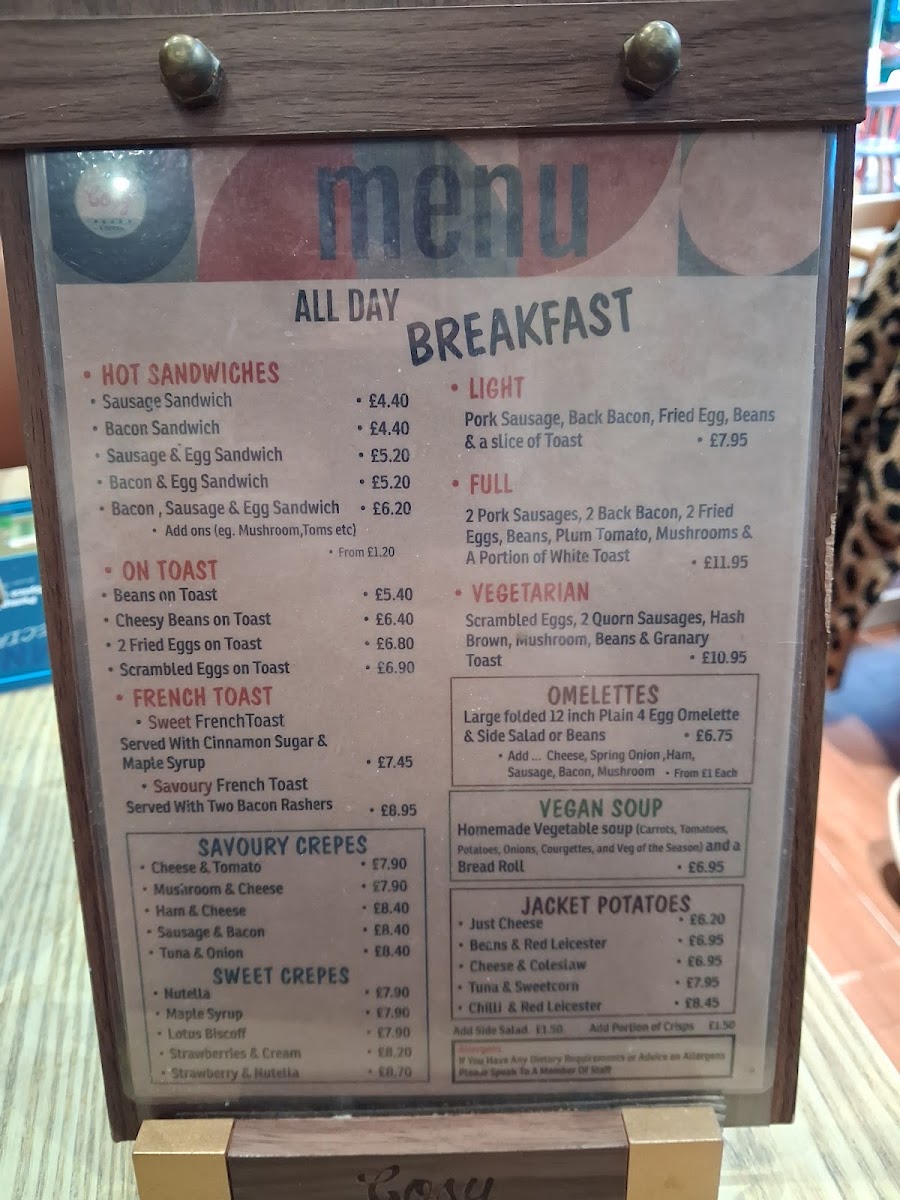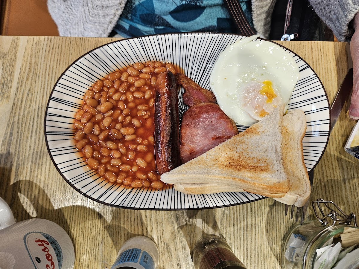 A nice cafe with lots of choice, food was very nice, staff were really friendly. Pleanty of seats inside and outside. Price was reasonable Also sells retro sweets Dogs welcome