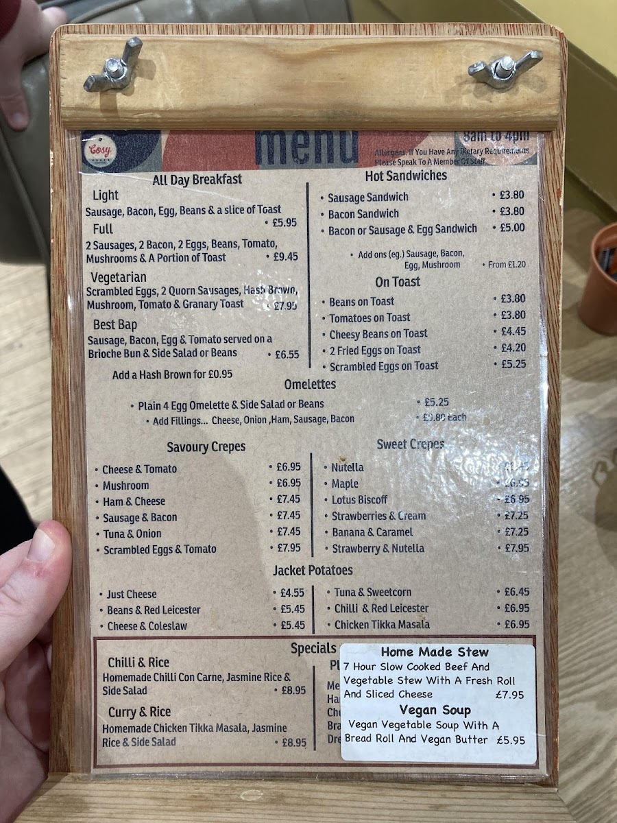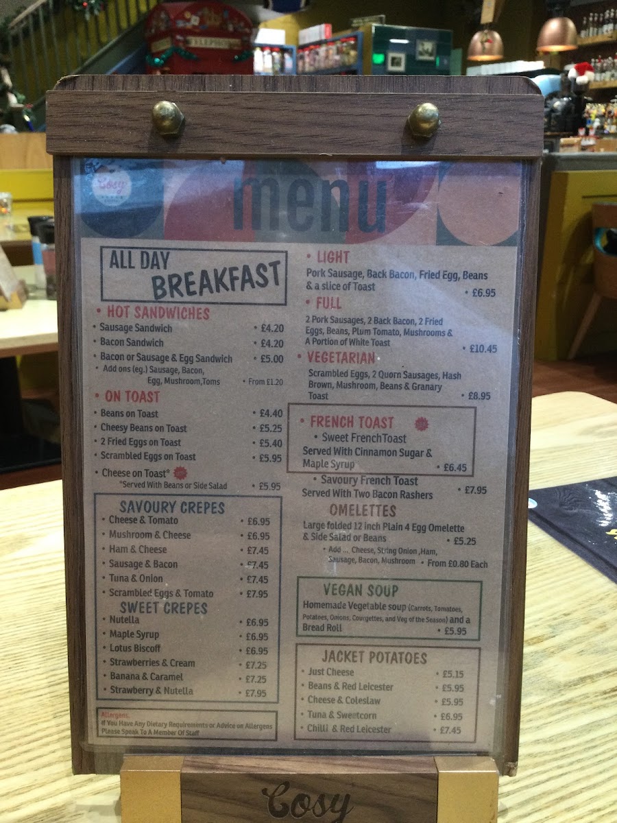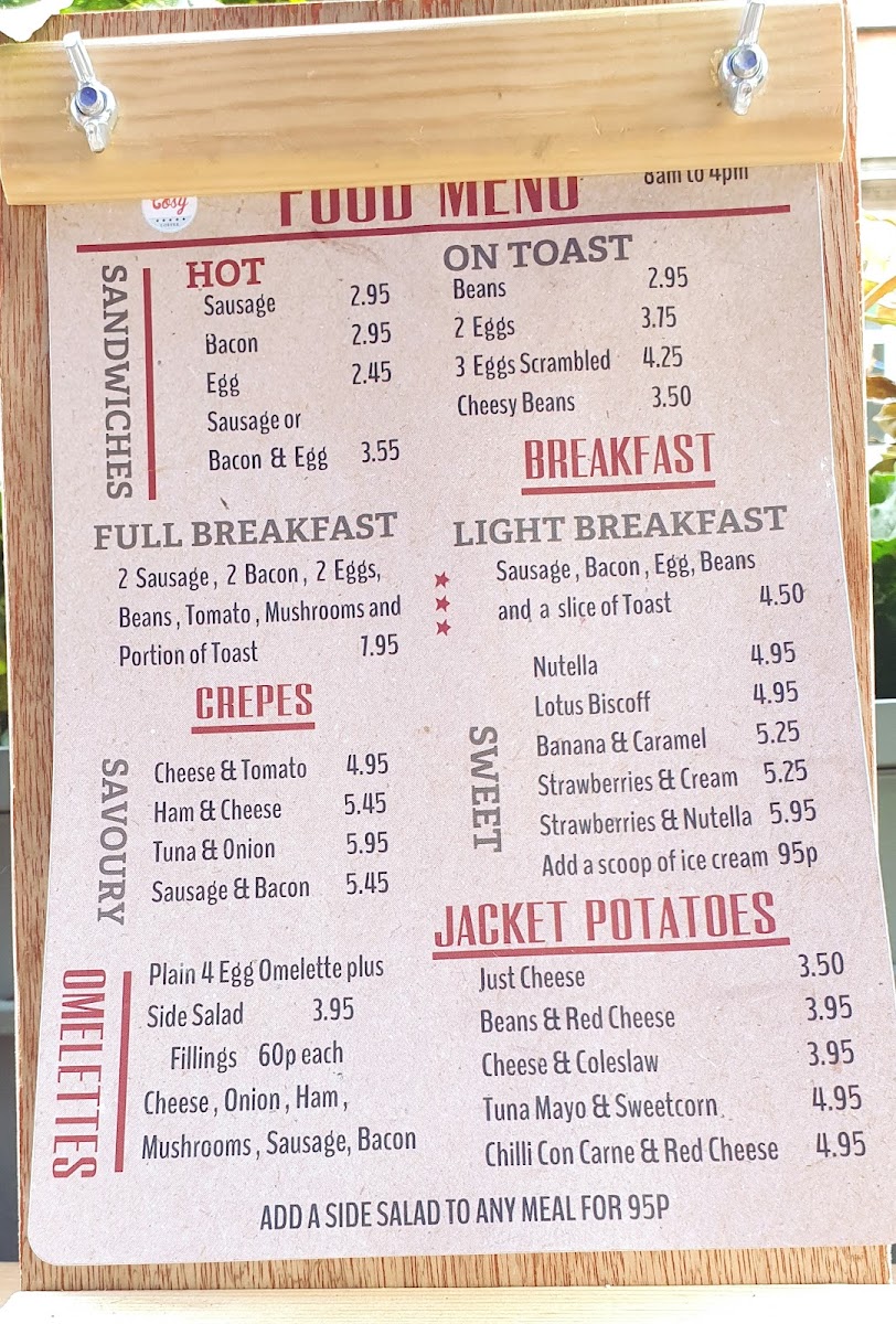 The menu at Cosy Coffee offers a straightforward and inviting café experience, featuring a mix of casual bites and comforting drinks that suits all times of the day. Whether you’re stopping by for a morning coffee, a relaxed brunch, or a light lunch, you’ll find options that feel familiar and satisfying without fuss.